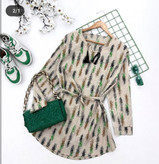 شومیز زنانه فری سایز پاییزه طرح پتینه چندرنگ با کمربند